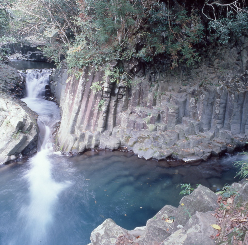 佐ケ野川上流火山から流れ出した溶岩によって作り出された滝です。