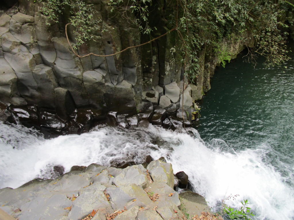 落差3m、幅2mの滝で、辺りの岩(玄武岩)の模様が蛇のうろこのように